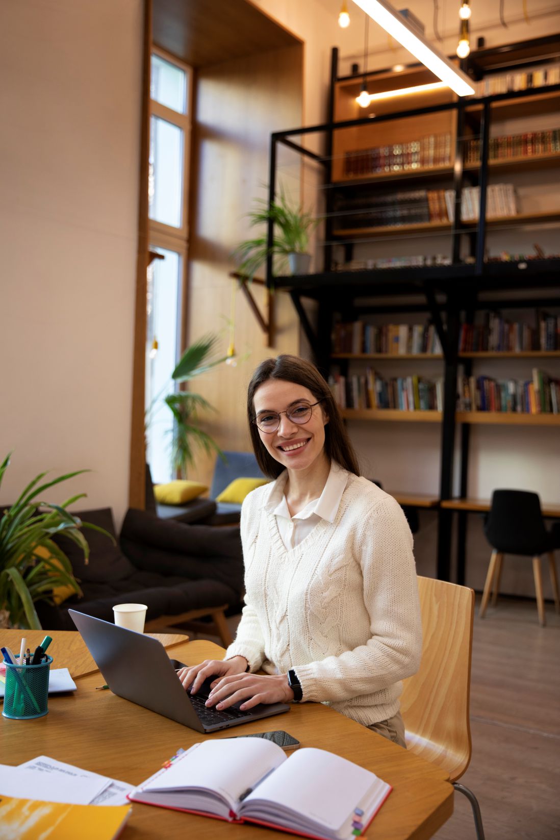 Espaços verdes: É esperado que escritórios tragam elementos naturais, como plantas em diferentes formatos e tamanhos, criando ambientes mais relaxantes e produtivos.